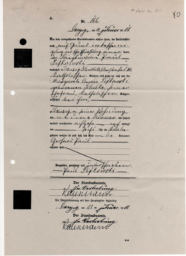 Gerhard Paul Pifkowski-Geburtsurkunde-1918