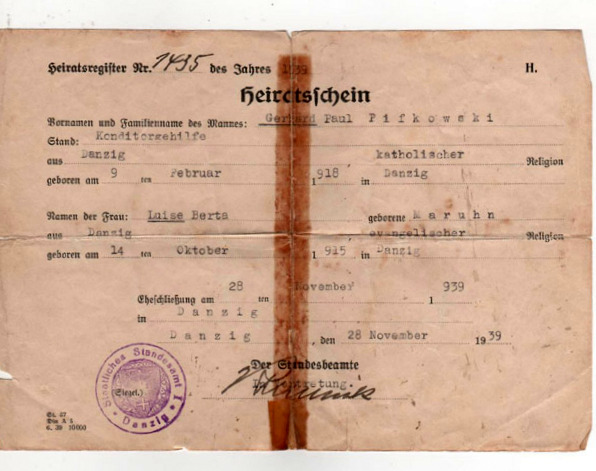Heiratsschein von Luise Berta und Gerhard Paul Pifkowski-1939