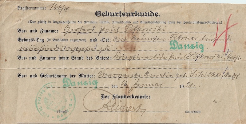 Gerhard Paul Pifkowski-Geburtsurkunde-1918