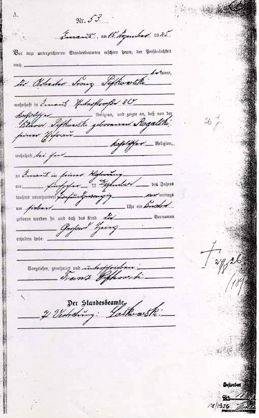 Gerhard Heinz Pi(ie)fkowski-Geburtsurkunde-1925